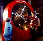 A video display plots where a magnetic attracting pendulum comes to rest for each of many starting points. This produces a familiar