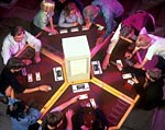 Pedal a bike to power lights, a TV, radio and fans. Shows 'muscle energy' being converted to electrical then to other forms of energy.