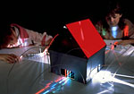 Polarising sheets (as in sunglasses) allow the stress patterns in plastic objects to be seen. (Built to travel.)