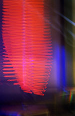 A neon strobe artwork by artist-in-residence Christian Shiess.