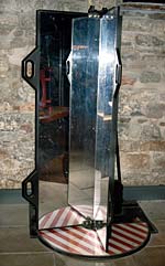 Heat from a hot coil at the focus of one parabolic mirror is reflected (like light) to the focus of a second mirror opposite it. Feel the