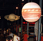 The solar system, with fantastic detailed models of the planets and their moons, shrunk down to fit inside the Exploratory.